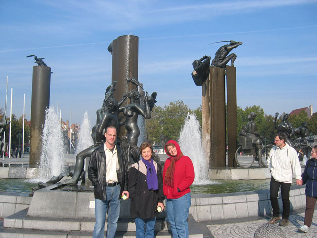 Ryan, Shirley & Jan in front of the fountain near where we parked.