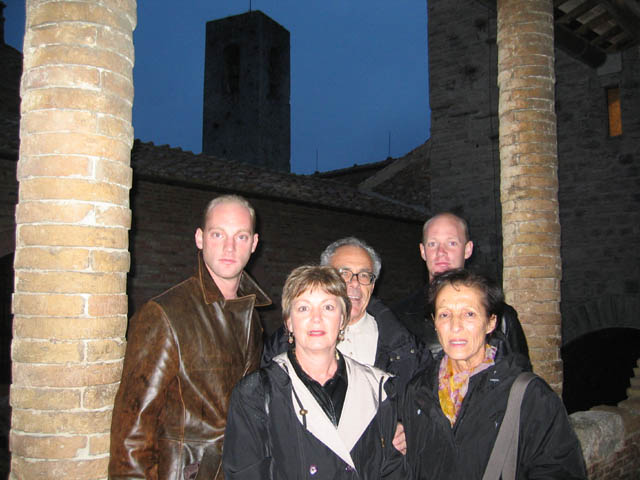 | The wedding is over, but the fun isn't quite over. Ronato picked us up and took us to his place in the hills on the edge of Florence for lunch, and then off to San Gimigano. Unfortunatly it was cloudy and sprinkling, and late in the evening so not very many pictures turned out. We stopped at a great pizza place on the way back to town. |