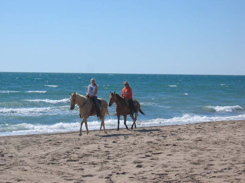 Katy and Cheryl took the hourses out for a walk on the beach.